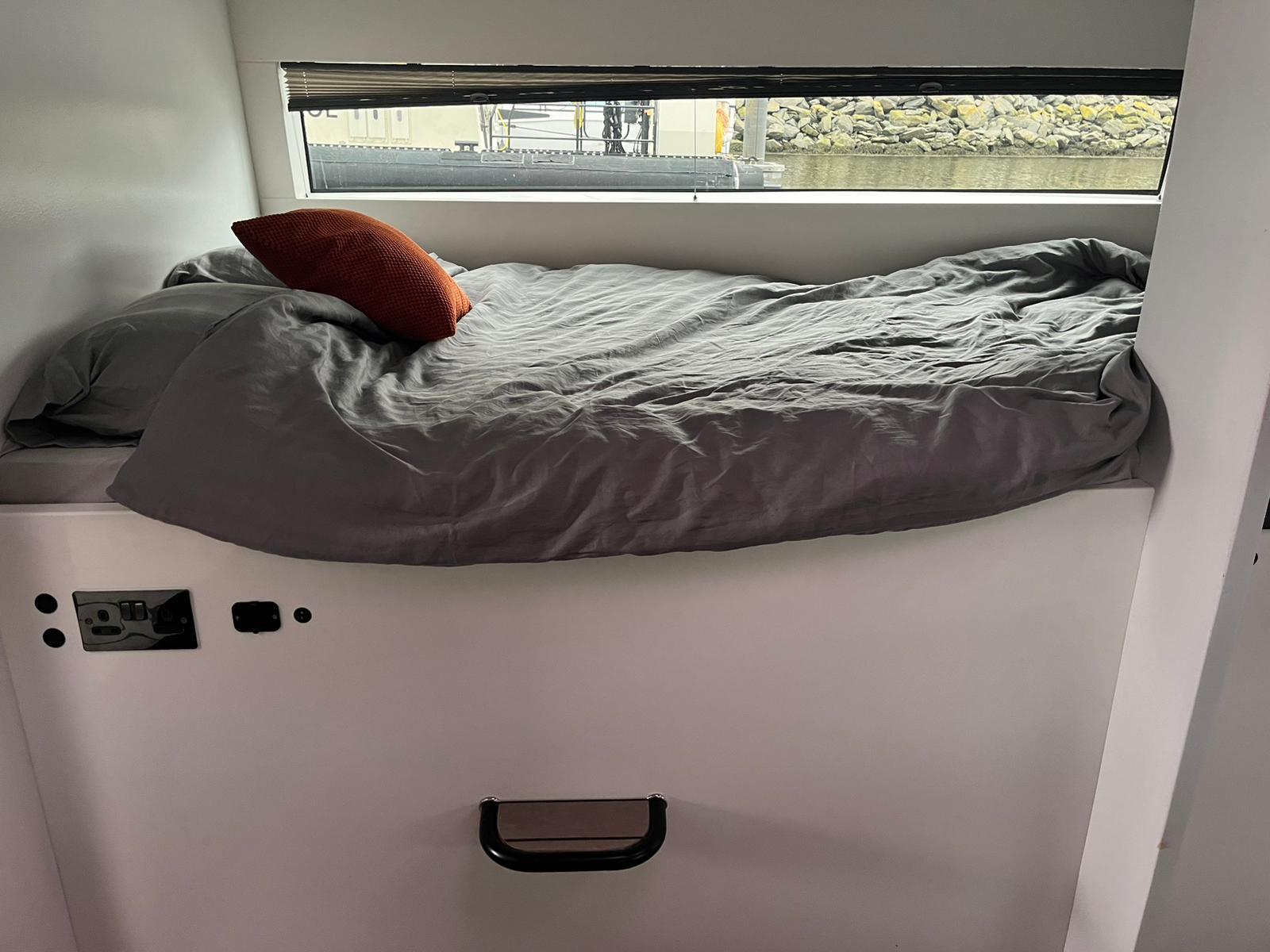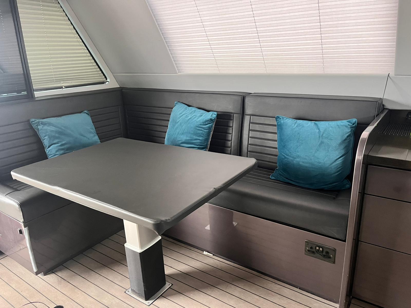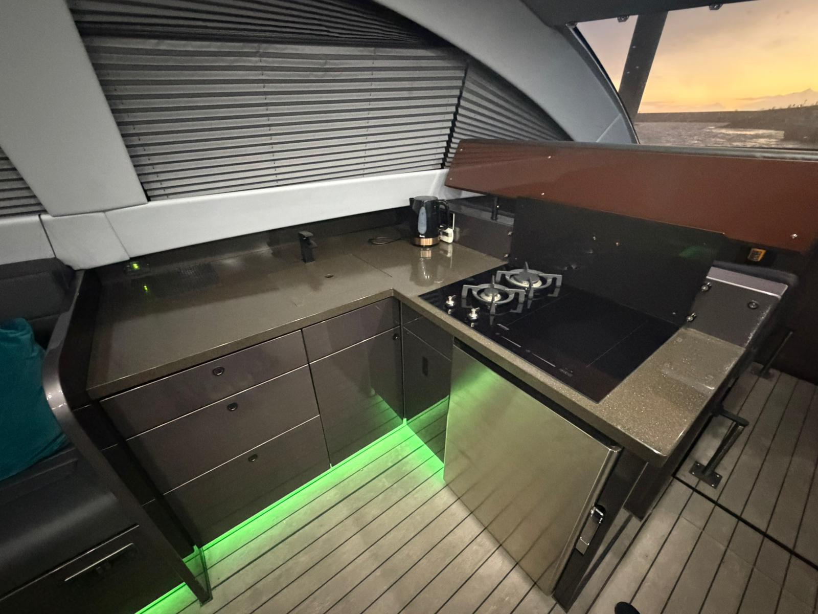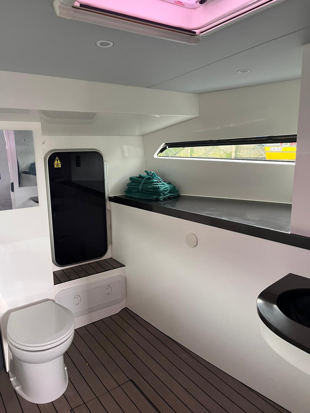 Introducing the Kaskara 47 Power Trimaran, a remarkable motor yacht that combines modern design with exceptional performance. This used vessel, built in 2021, boasts an impressive overall length of 14 meters, providing ample space for both relaxation and adventure on the water. Crafted from durable fiberglass, the catamaran hull shape ensures stability and efficiency, making it an ideal choice for cruising. Powered by two robust Mercury V8 engines, each delivering 300 hp, this yacht promises exhilarating speed and responsiveness, with only 60 hours of use, ensuring reliability for your journeys. The Kaskara 47 is equipped with essential features. Its thoughtful design allows for a comfortable experience, making it perfect for day trips or extended voyages. Experience the thrill of the open sea with this stunning motor yacht, where luxury meets performance.